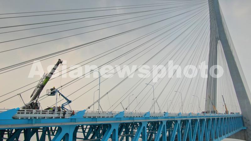世界上最大跨度公铁两用斜拉桥“阻尼器”安装忙 查看组图