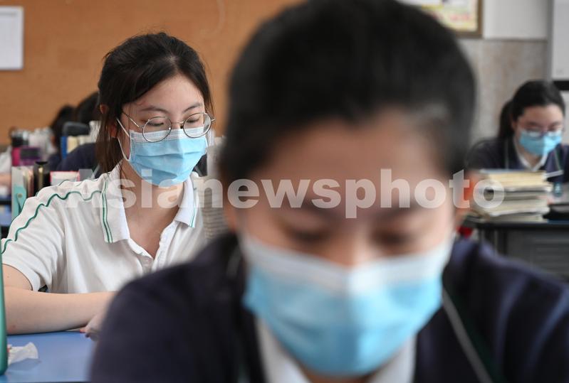 2020年5月6日上午,武汉六中高三学生在教室内上课。
