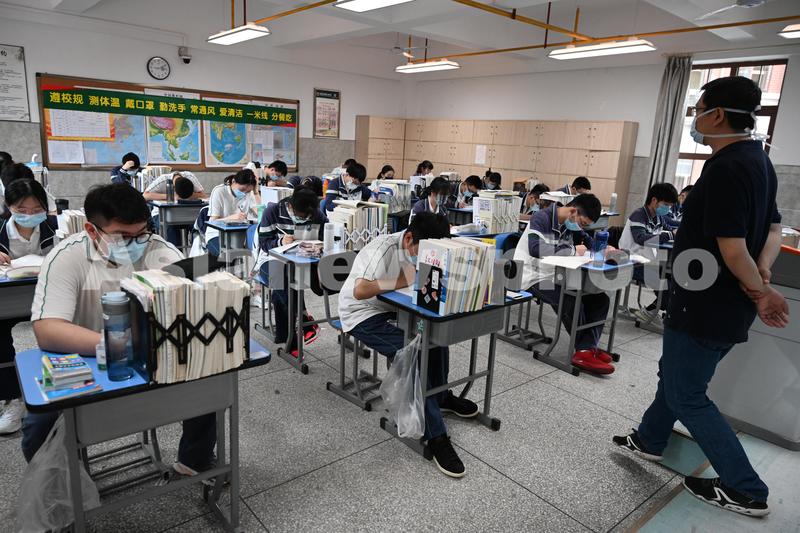 2020年5月6日上午,武汉六中高三学生在教室内上课。