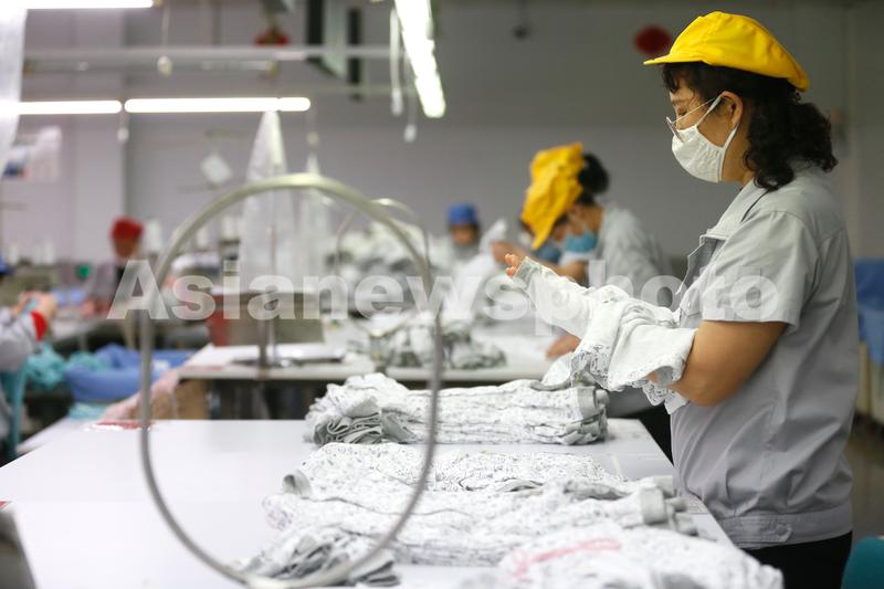 2020年5月15日,山东青岛市即墨区即发集团华泰针织有限公司的工人在生产童装产品。