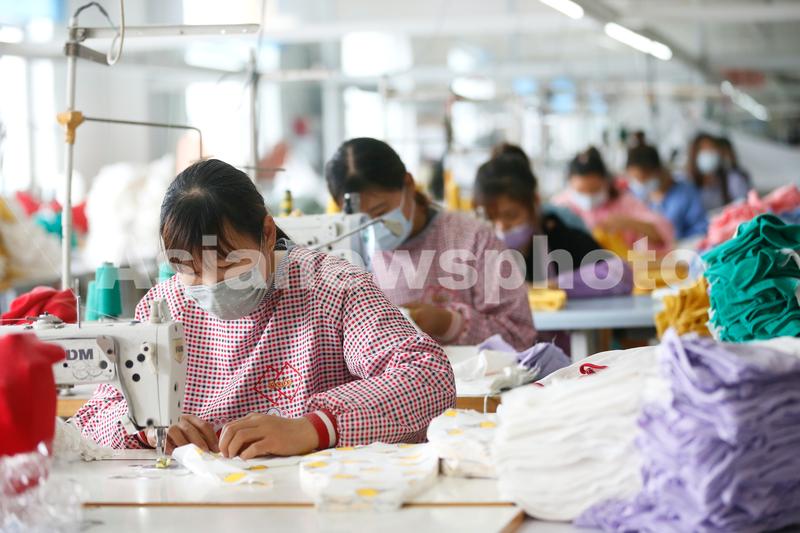 2020年5月15日,位于山东青岛市即墨区科技创新园的青岛雨润小禾服饰有限公司的工人在生产童装产品。
