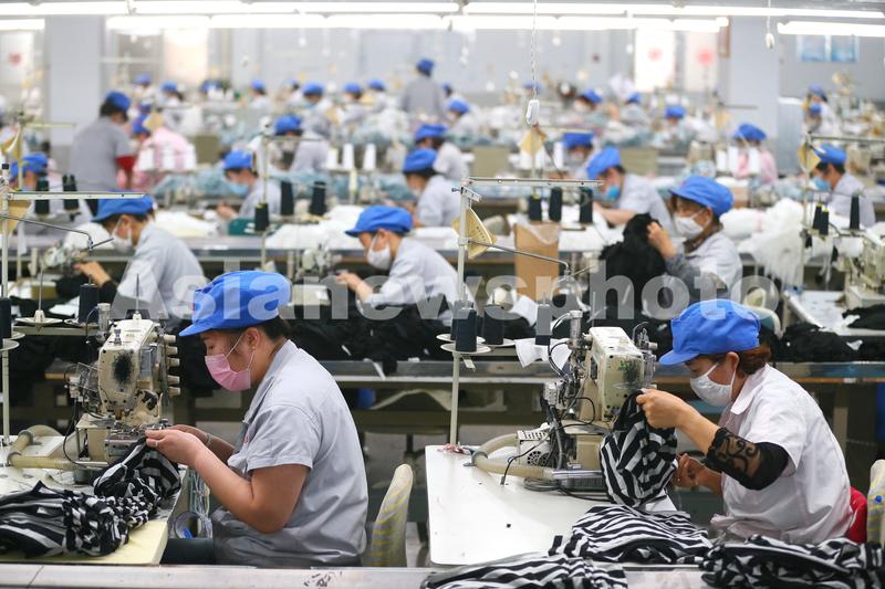 2020年5月15日,山东青岛市即墨区即发集团华泰针织有限公司的工人在生产童装产品。
