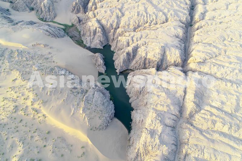 2020年5月19日,无人机拍摄的大漠天池景色。