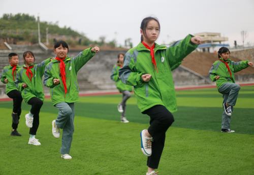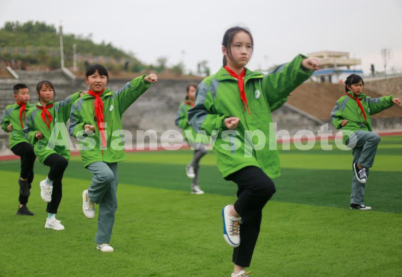 2020年5月27日,在贵州省毕节市黔西县第一实验小学,六年级学生在上体育课。