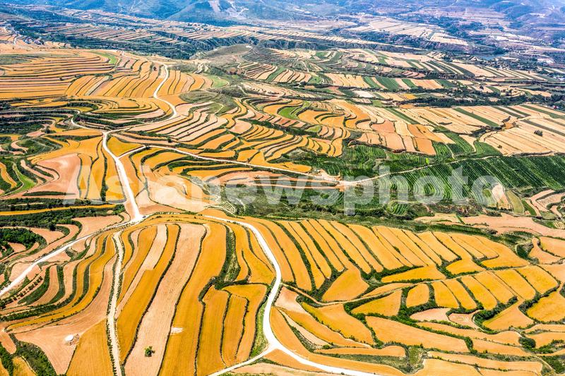 2020年6月3日,正值小麦成熟收割期,山西省运城市闻喜县河底镇,金色的小麦把层层梯田装扮的分外妖娆,格外壮美,空中俯瞰,宛如一幅大气蓬勃的金色田园画卷,十分壮观。