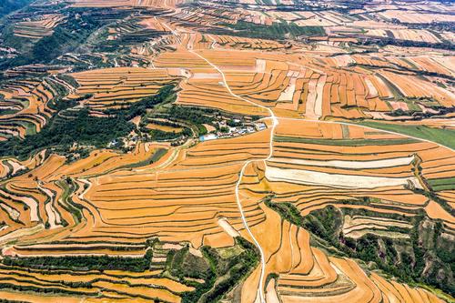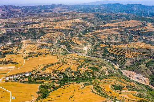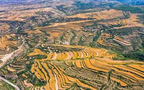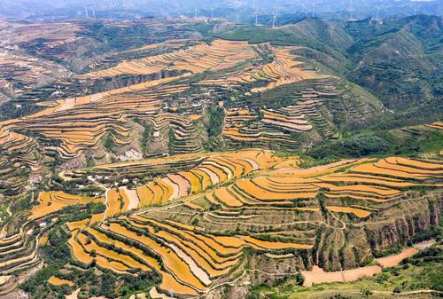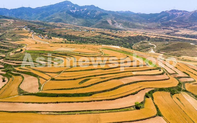 2020年6月3日,在山西省运城市闻喜县河底镇还家岭村拍摄的金色梯田。