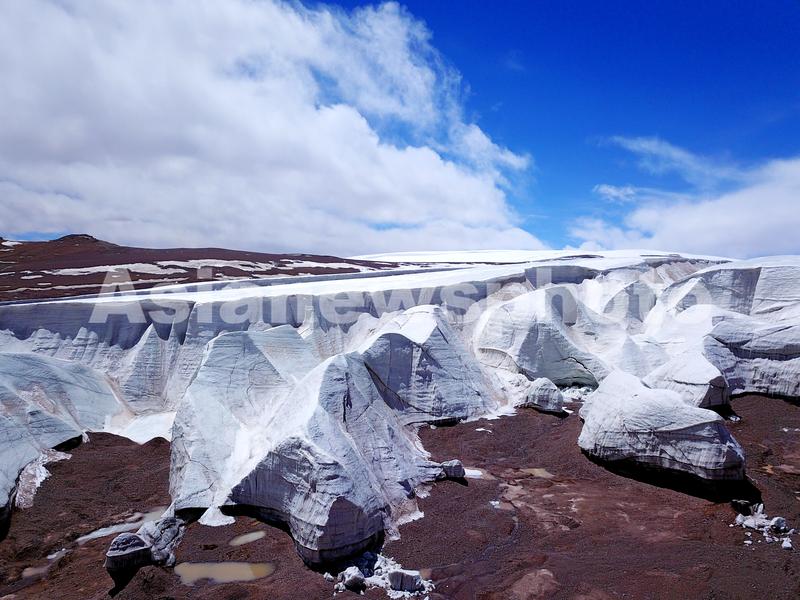 2020年5月28日,西藏阿里藏色岗日冰川,位于西藏阿里地区改则县古姆乡珠玛日村境内,拍摄于海拔5805米。藏色岗日冰川属于羌塘国家级自然保护区,是珍稀野生动物的天然保护区,分布有大量青藏高原特有物种野牦牛、藏羚羊 、藏原羚、藏雪鸡和西藏野驴等以上资源兽类,在羌塘无人区被保护得最好,种群数量也最多,该地区是目前世界上高寒生态系统尚未遭受破坏的最完好地区,是研究珍稀野生动物生态生物学的理想场所,已设立羌塘国家级自然保护区阿里地区管理局珠玛日管理站。