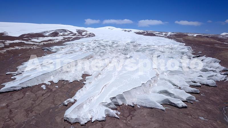 2020年5月28日,西藏阿里藏色岗日冰川,位于西藏阿里地区改则县古姆乡珠玛日村境内,拍摄于海拔5805米。藏色岗日冰川属于羌塘国家级自然保护区,是珍稀野生动物的天然保护区,分布有大量青藏高原特有物种野牦牛、藏羚羊 、藏原羚、藏雪鸡和西藏野驴等以上资源兽类,在羌塘无人区被保护得最好,种群数量也最多,该地区是目前世界上高寒生态系统尚未遭受破坏的最完好地区,是研究珍稀野生动物生态生物学的理想场所,已设立羌塘国家级自然保护区阿里地区管理局珠玛日管理站。