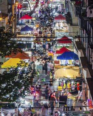 图片说明:6月3日拍摄的湖北省武汉市保成路夜市。