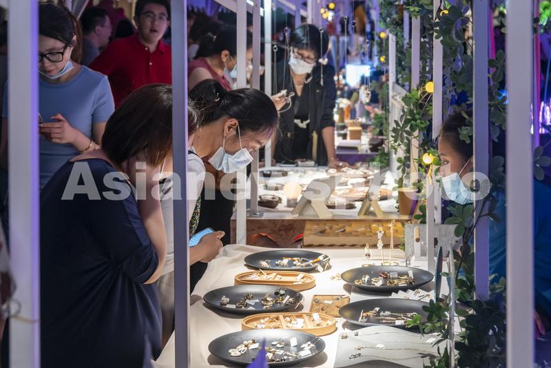 2020年6月6日,上海“BFC外滩枫径”集市正式揭幕,市民游客在逛夜市。