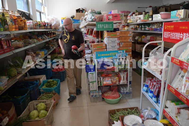 2020年6月11日,梅学良在村中的杂货店购买蔬菜。