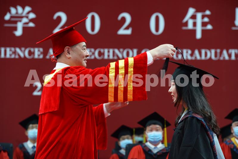 2020年6月21日,华中科技大学2020年毕业典礼在光谷体育馆举行,数百名毕业生代表来到现场正冠拨穗,与线上一万多名毕业生一同见证属于自己的毕业时刻。毕业典礼中,校长李元元院士提议,向在战疫中牺牲的烈士和不幸去世的同胞默哀一分钟。毕业典礼后,不少毕业生一起合影留恋,或争相与校长李元元院士合影。