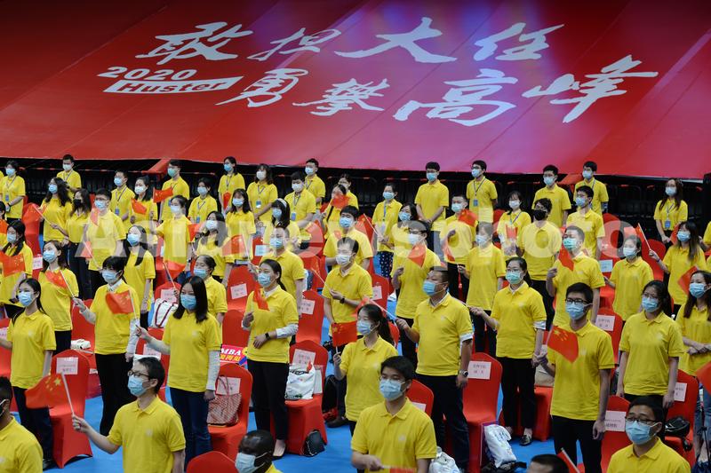 2020年6月21日,华中科技大学2020年毕业典礼在光谷体育馆举行,数百名毕业生代表来到现场正冠拨穗,与线上一万多名毕业生一同见证属于自己的毕业时刻。毕业典礼中,校长李元元院士提议,向在战疫中牺牲的烈士和不幸去世的同胞默哀一分钟。毕业典礼后,不少毕业生一起合影留恋,或争相与校长李元元院士合影。
