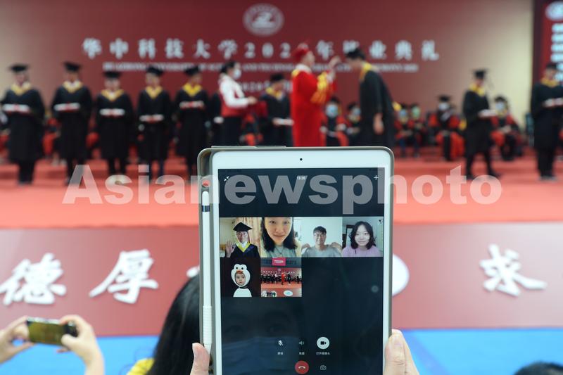 2020年6月21日,华中科技大学2020年毕业典礼在光谷体育馆举行,数百名毕业生代表来到现场正冠拨穗,与线上一万多名毕业生一同见证属于自己的毕业时刻。毕业典礼中,校长李元元院士提议,向在战疫中牺牲的烈士和不幸去世的同胞默哀一分钟。毕业典礼后,不少毕业生一起合影留恋,或争相与校长李元元院士合影。