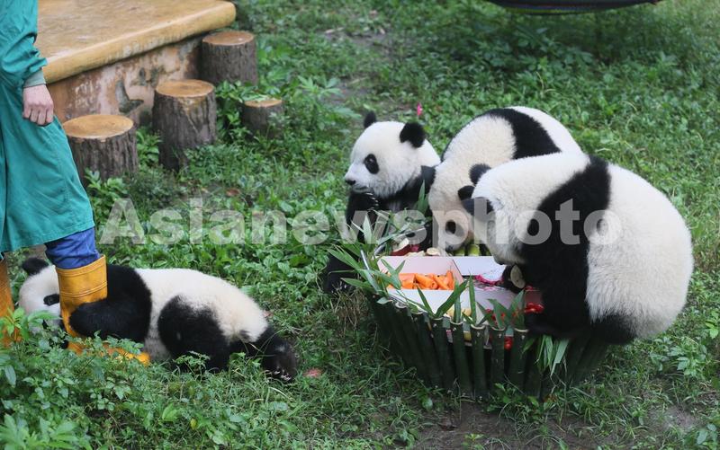 2020年6月23日,重庆动物园为4只大熊猫“双双”“重重”“喜喜”“庆庆”举行周岁生日庆祝活动。4只大熊猫在重庆动物园熊猫馆运动场内玩耍嬉戏,享用市民游客为它们亲手制作的“生日蛋糕”。