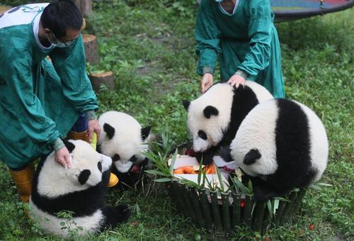 重庆:大熊猫“双重喜庆”满周岁