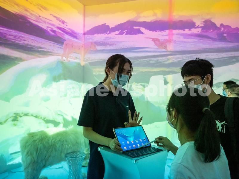 2020年6月27日,广东广州,华为P40艺术空间馆在天河城北广场登陆,在5G覆盖的巨型白色方盒子内,市民现场体验华为P40系列、平板电脑、路由器,音箱、智能手表等产品。