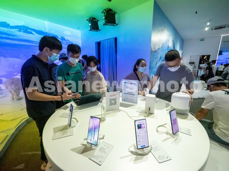 2020年6月27日,广东广州,华为P40艺术空间馆在天河城北广场登陆,在5G覆盖的巨型白色方盒子内,市民现场体验华为P40系列、平板电脑、路由器,音箱、智能手表等产品。