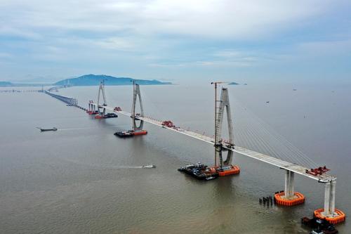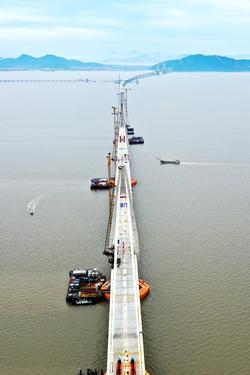 浙江舟山:沪舟甬跨海通道舟岱大桥主通航孔桥合龙 查看组图