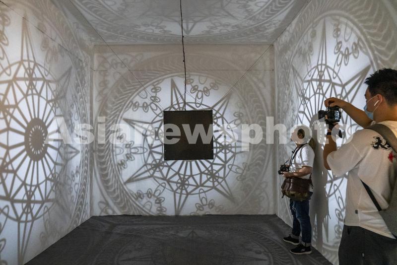 图片说明:6月30日,上海,观众在“千年绮华-从敦煌到高昌”宝石壁画沉浸式展览现场观展。