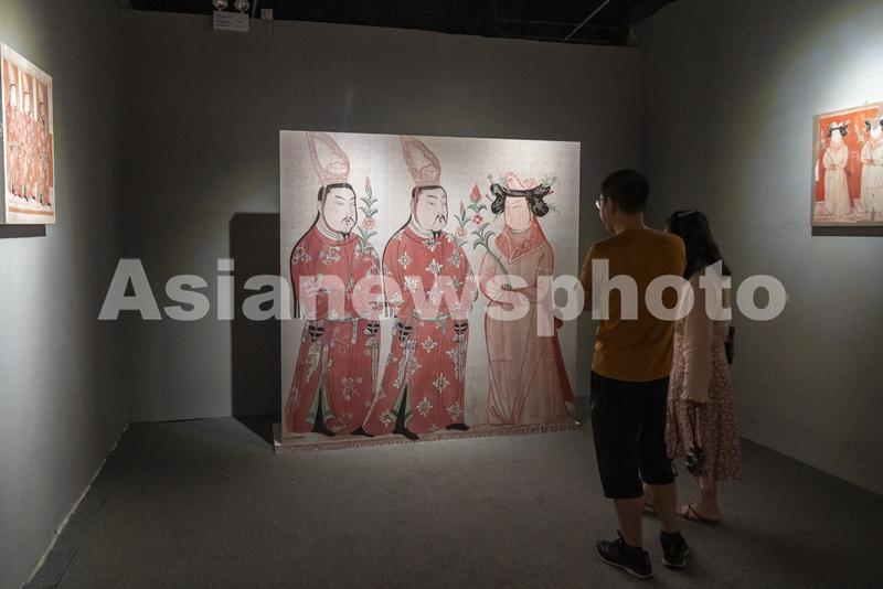 图片说明:6月30日,上海,观众在“千年绮华-从敦煌到高昌”宝石壁画沉浸式展览现场观展。