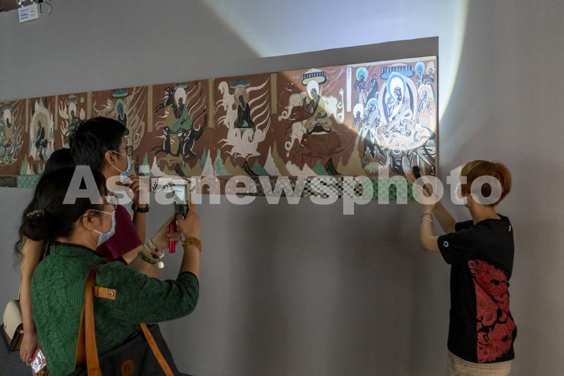 图片说明:6月30日,上海,观众在“千年绮华-从敦煌到高昌”宝石壁画沉浸式展览现场观展。