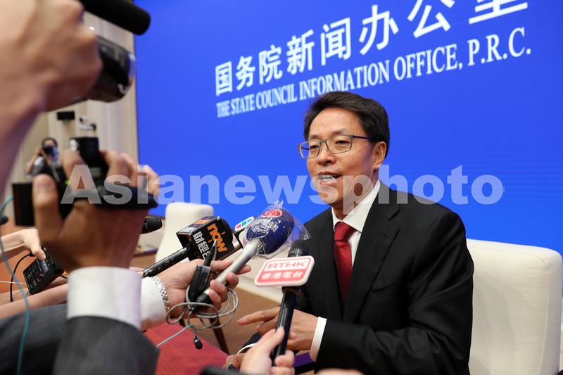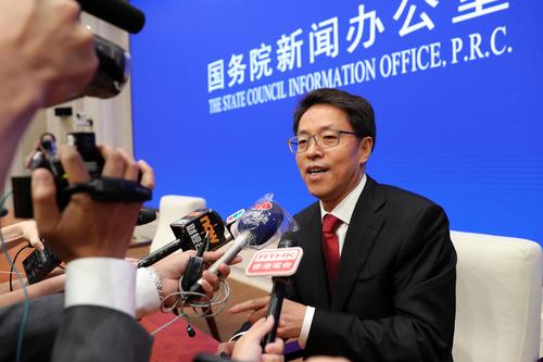 7月1日,国务院港澳事务办公室分管日常工作的副主任张晓明在新闻发布会结束后接受媒体采访。