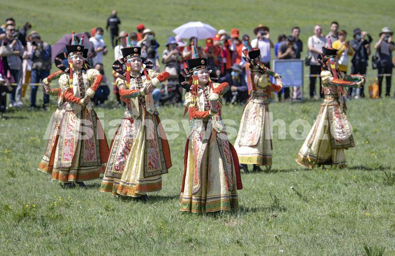 图片说明:2020年7月3日,演员在敖包文化节上表演蒙古族舞蹈。