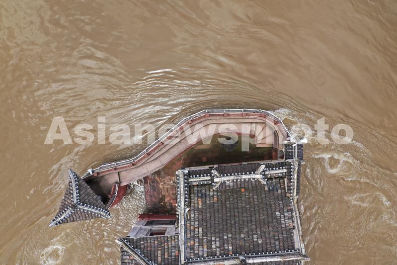 湖北省鄂州长江水位超设防水位,位于江心一块礁石上的鄂州观音阁下方十几米高的基座被淹。观音阁有“万里长江第一阁”的美誉,是全国重点文物保护单位,距今已有700余年的历史。
