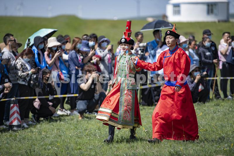图片说明:2020年7月3日,模特在敖包文化节上展示察哈尔蒙古族服饰。