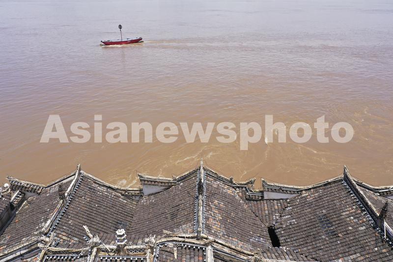 湖北省鄂州长江水位超设防水位,位于江心一块礁石上的鄂州观音阁下方十几米高的基座被淹。观音阁有“万里长江第一阁”的美誉,是全国重点文物保护单位,距今已有700余年的历史。