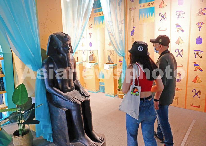 图片说明:7月9日,上海,大英博物馆“埃及萌神”快闪店中金字塔、法老王、古代众神等高大上的古埃及历史文明通过年轻时尚化、卡通萌化的二次元IP创造走进大众消费者生活,成为文创消费新晋网红打卡地。