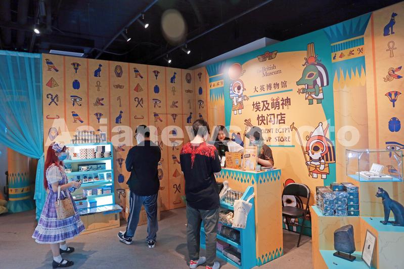 图片说明:7月9日,上海,大英博物馆“埃及萌神”快闪店中金字塔、法老王、古代众神等高大上的古埃及历史文明通过年轻时尚化、卡通萌化的二次元IP创造走进大众消费者生活,成为文创消费新晋网红打卡地。
