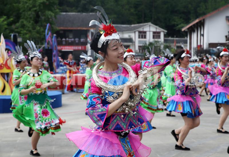 2020年7月24日,在重庆市彭水苗族土家族自治县阿依河景区,苗族同胞跳苗舞,庆祝踩花山节。