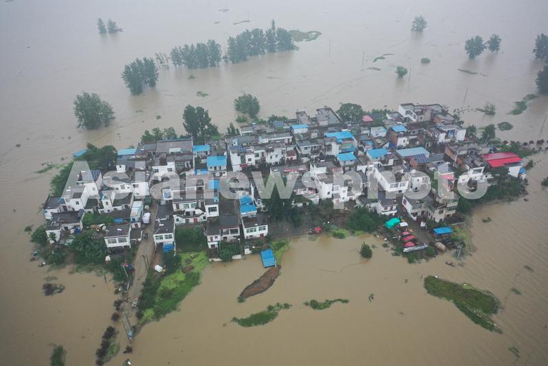 2020年7月26日无人机拍摄的被洪水围困的蒙洼蓄洪区后刘台庄台。