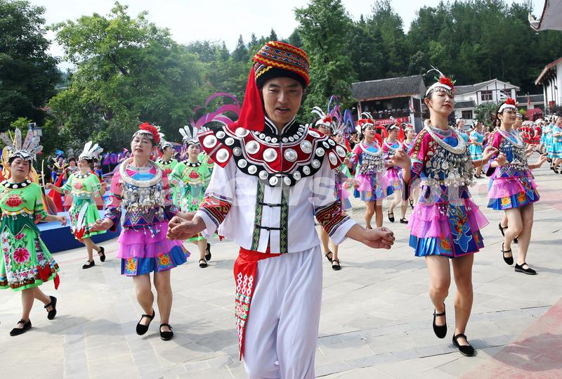 2020年7月24日,在重庆市彭水苗族土家族自治县阿依河景区,苗族同胞跳苗舞,庆祝踩花山节。