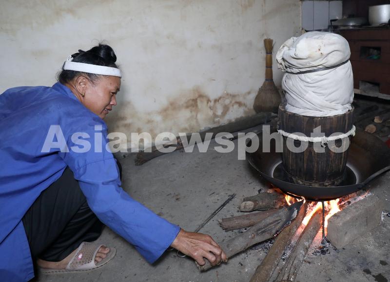 7月29日,在广西三江侗族自治县良口乡南寨村,一名妇女在蒸侗布。
