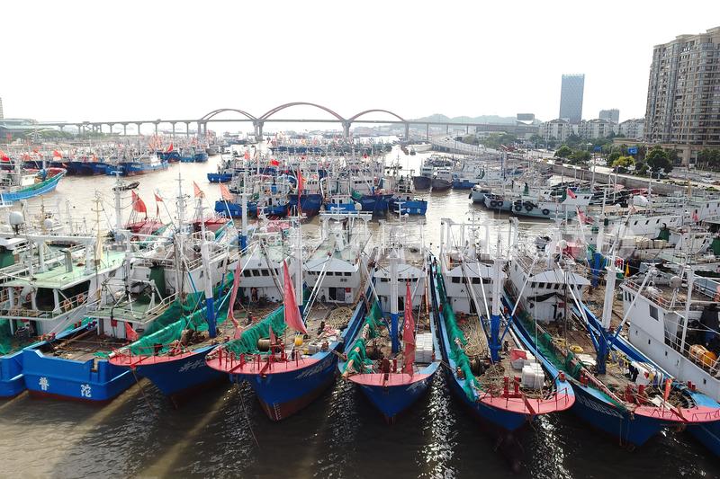 2020年7月31日下午,浙江舟山群岛新区沈家门渔港内,渔船整装待发。