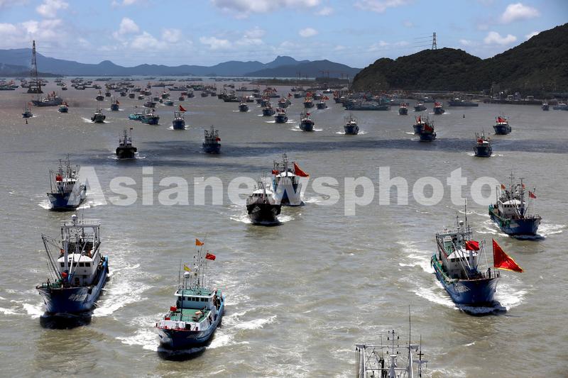 2020年8月1日下午,千艘渔船驶过浙江舟山朱家尖大桥,驶往东海渔场,开启新一轮捕捞作业。8月1日中午12点起,单船桁杆拖网(桁杆拖虾)、笼壶类、刺网类、围网类及船敷箕状敷网作业渔船结束了三个月的休渔期,舟山全市约有2200艘渔船解禁开捕,开赴禁渔线外的东海海域进行捕捞作业。