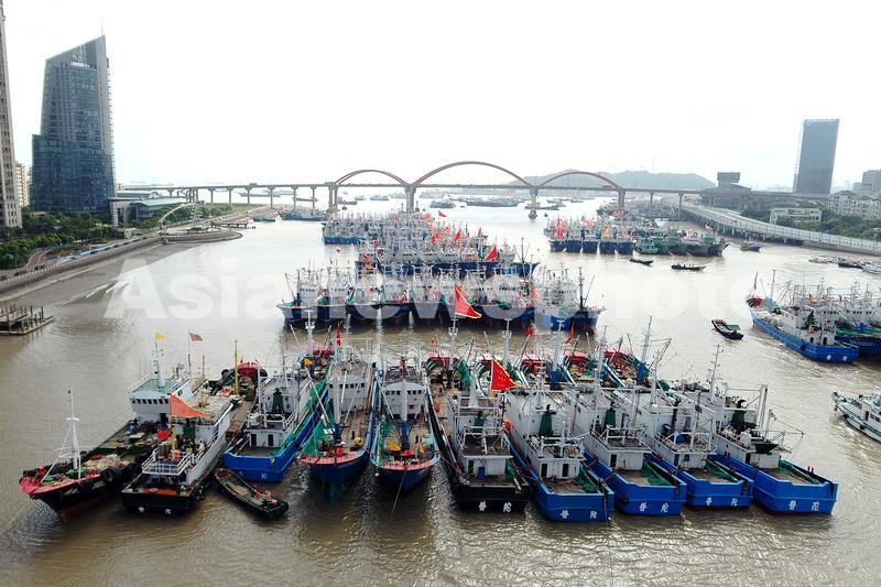 2020年7月31日下午,浙江舟山群岛新区沈家门渔港内,渔船整装待发。