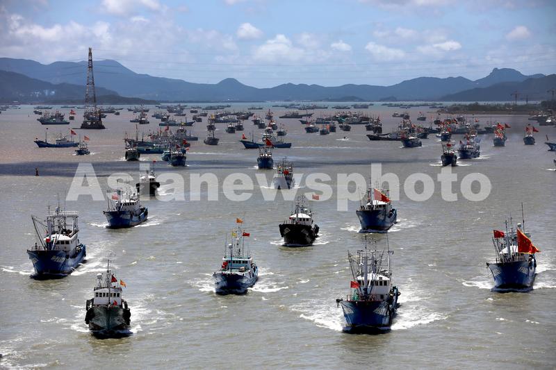 2020年8月1日下午,千艘渔船驶过浙江舟山朱家尖大桥,驶往东海渔场,开启新一轮捕捞作业。8月1日中午12点起,单船桁杆拖网(桁杆拖虾)、笼壶类、刺网类、围网类及船敷箕状敷网作业渔船结束了三个月的休渔期,舟山全市约有2200艘渔船解禁开捕,开赴禁渔线外的东海海域进行捕捞作业。