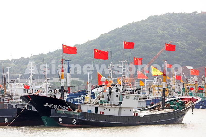 2020年7月31日下午,浙江舟山群岛新区沈家门渔港内,渔船整装待发。