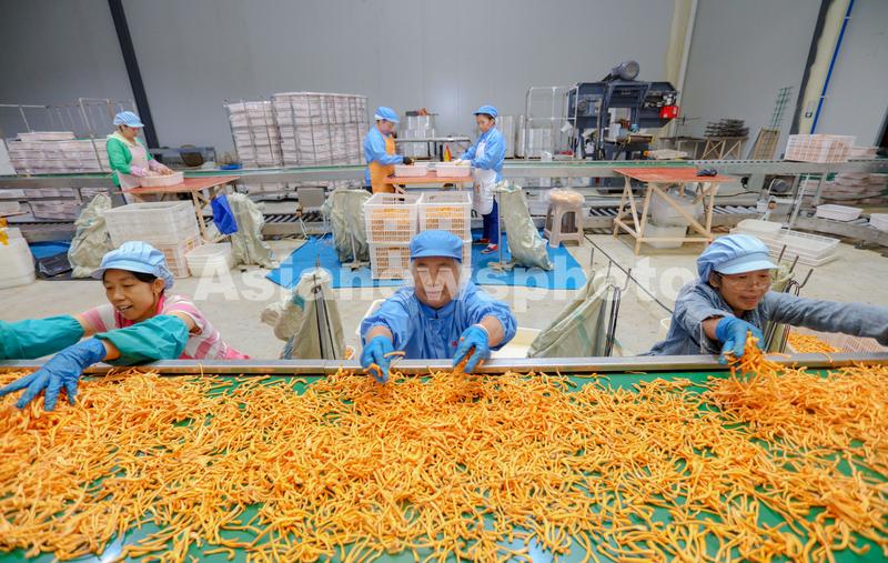 2020年8月7日,四川省遂宁市蓬溪县天福镇琪英菌业生产车间内,工人忙着加工虫草花。据介绍,近年来,当地大力发展菌类产业,建成了全国最大虫草花工厂化生产基地,项目于今年逐步投产,目前日产虫草花24吨,预计实现年产值1.2亿元。