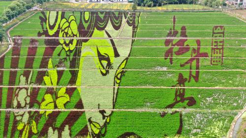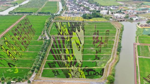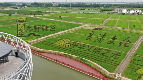 2020年8月8日,在江苏省苏州市昆山张浦镇尚明甸村,占地近200亩的昆曲等3D稻田艺术画迎来最佳观赏期,从高空俯瞰,牡丹亭、乡野硅谷、良渚文化、乡村振兴等主题彩色3D稻田艺术画惊艳、壮观,吸引了参观者登高观赏。