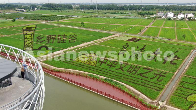 2020年8月8日,在江苏省苏州市昆山张浦镇尚明甸村,占地近200亩的昆曲等3D稻田艺术画迎来最佳观赏期,从高空俯瞰,牡丹亭、乡野硅谷、良渚文化、乡村振兴等主题彩色3D稻田艺术画惊艳、壮观,吸引了参观者登高观赏。