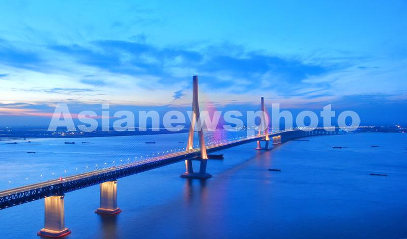 沪苏通长江公铁大桥夜色(配图) 查看组图