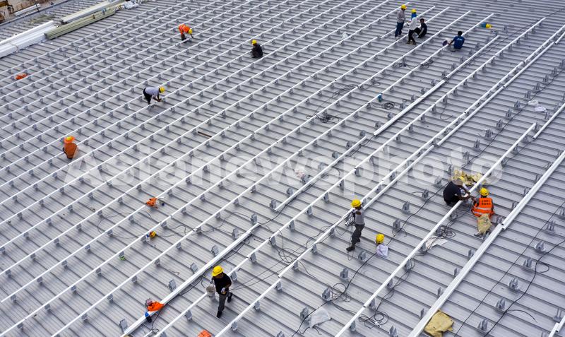 2020年8月8日,进入施工后期阶段的上海浦东足球场场馆项目现场。
