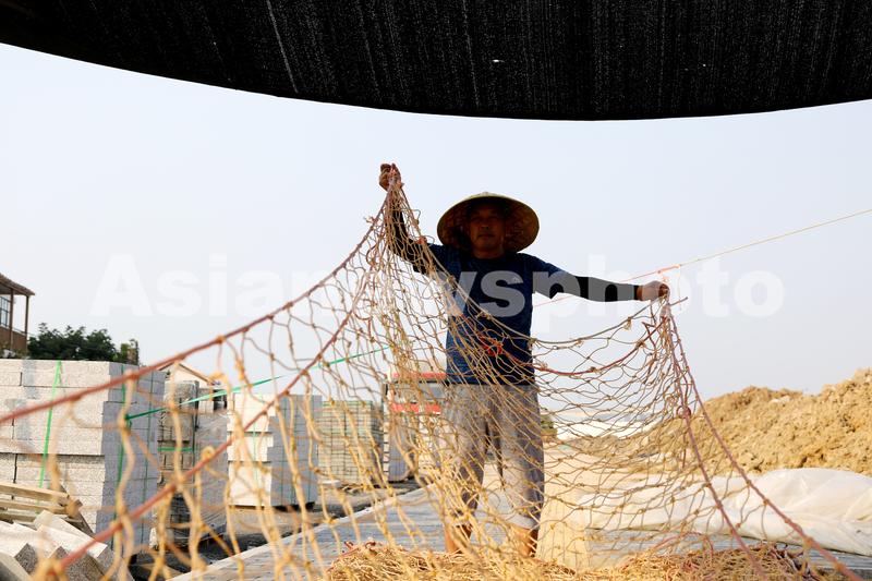2020年8月18日,江苏省连云港市连云区高公岛街道养殖户正在修补、整理养殖紫菜使用的网帘。近日,当地沿海地区紫菜养殖户加紧对紫菜养殖的网帘进行修补、清洗、晾晒,为即将开始的紫菜放苗做好准备。近年来,随着玻璃钢撑杆等科技创新技术的运用,该市紫菜挂箱养殖逐步走向“深海”,养殖面积已经扩大到40多万亩,紫菜品质不断得到提高,条斑紫菜已成为海水养殖的特色产业和主导产业。