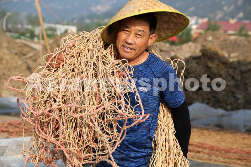 2020年8月18日,江苏省连云港市连云区高公岛街道养殖户正在修补、整理养殖紫菜使用的网帘。近日,当地沿海地区紫菜养殖户加紧对紫菜养殖的网帘进行修补、清洗、晾晒,为即将开始的紫菜放苗做好准备。近年来,随着玻璃钢撑杆等科技创新技术的运用,该市紫菜挂箱养殖逐步走向“深海”,养殖面积已经扩大到40多万亩,紫菜品质不断得到提高,条斑紫菜已成为海水养殖的特色产业和主导产业。