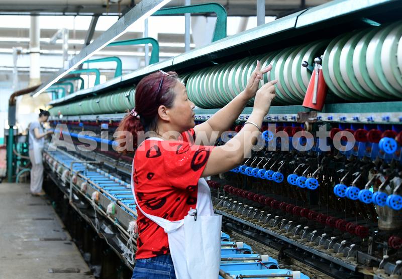 图片说明:2020年8月19日,江苏海安鑫缘制丝公司工人在高温车间里缫丝。